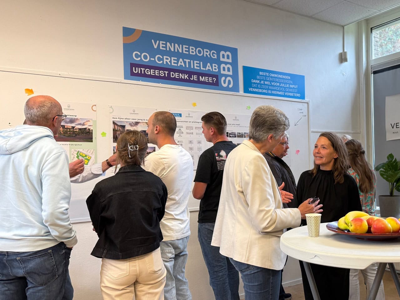 Op dinsdag 8 juli kwamen buurtbewoners, woningzoekenden en collega’s van het projectteam samen in het SBB co-creatielab voor de tweede informatiebijeenkomst over Venneborg. We presenteerden het verder uitgewerkte ontwerp, de planning én gingen met elkaar in gesprek.